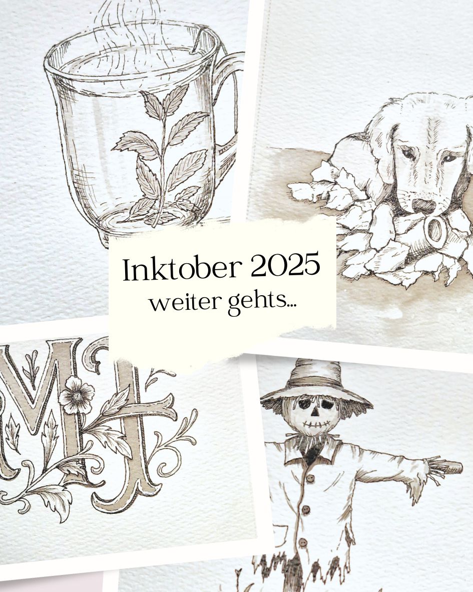 Spannend finde ich, dass ich direkt mit den ersten Bildern irgendwie mutiger geworden bin und egal was es ist, einfach mal mit der Vorzeichnung loslege, ohne groß zu überlegen, ob ich das denn kann. Das finde ich SEHR GUT. Und ich mag die Schattierung mit Pinsel und Tusche, mir gefällt der Look.